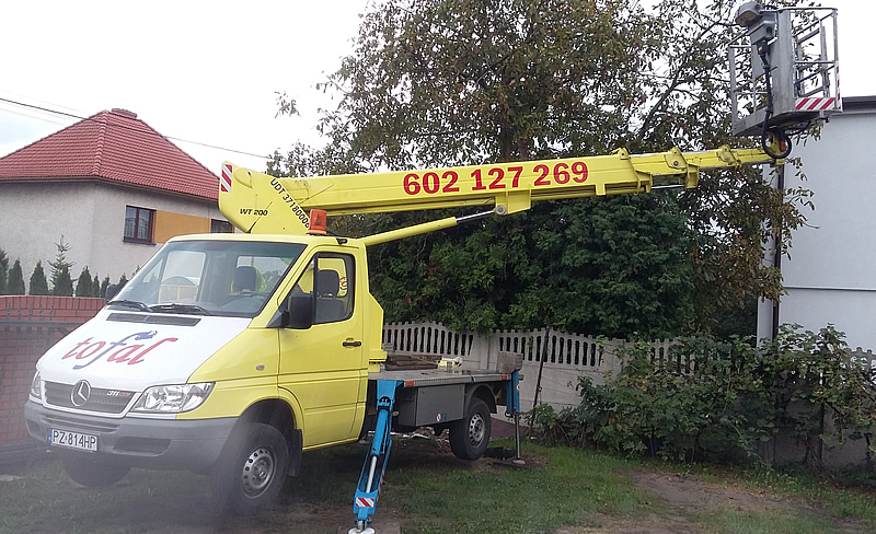 - Max. wysięg boczny przy obciążeniu kosza 100kg: 11m